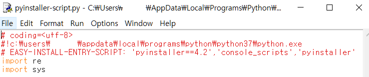(내 파일 위치 : C:\Users\name\AppData\Local\Programs\Python\Python37\Scripts\pyinstaller-script.py)